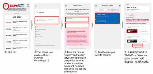 Access “EXPO Quick” with your smartphone or PC, select the date, time, gate, and number of tickets you wish to purchase, and pay. You will then be able to enter the Expo site using the QR code displayed after payment. There is no need to register an Expo ID. (source: expo2025.or.jp)